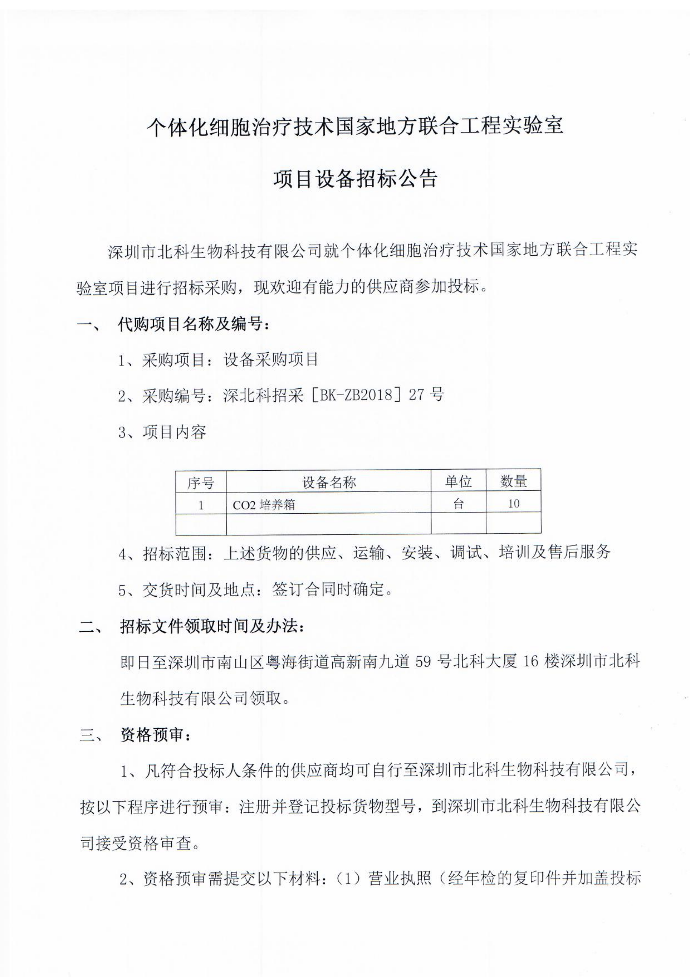 個體化細(xì)胞治療技術(shù)國家地方聯(lián)合工程實驗室項目設(shè)備招標(biāo)公告