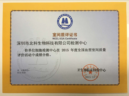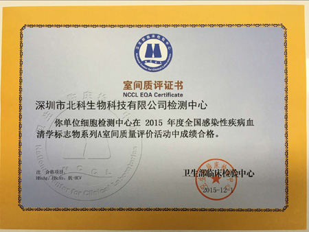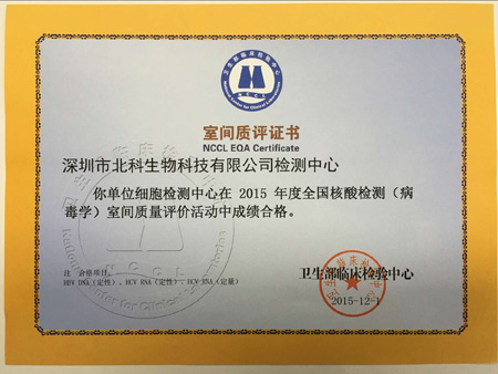 至今,北科生物自2011年以來,已參加4次衛(wèi)生部臨床檢驗中心組織的室間質評活動,均獲得合格的《室間質評證書》;今后,深圳細胞質量檢測平臺將持續(xù)參加室間質評項目,為客戶儲存的細胞及制備臨床級細胞提供更安全保障。