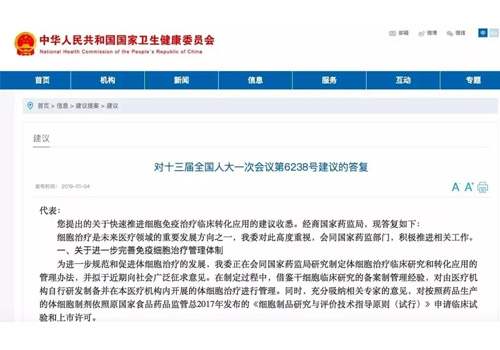 您提出的關(guān)于快速推進細胞免疫治療臨床轉(zhuǎn)化應(yīng)用的建議收悉。經(jīng)商國家藥監(jiān)局,現(xiàn)答復(fù)如下: